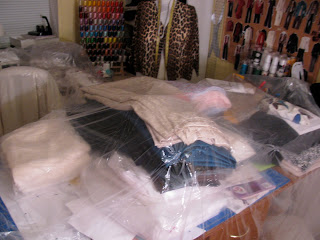 I'm still dealing with repairs around my house. The access to my attic is through my sewing room closet so everything in my sewing room is covered up and pushed to the side until everything is done.What a drag, I thought about pulling my sewing machine out and using it on the dining room table but naah...that won't work for me. This top is what I'm working on from the stuff I cut out back in July. I'd love to get this finished to wear before it turns cold.